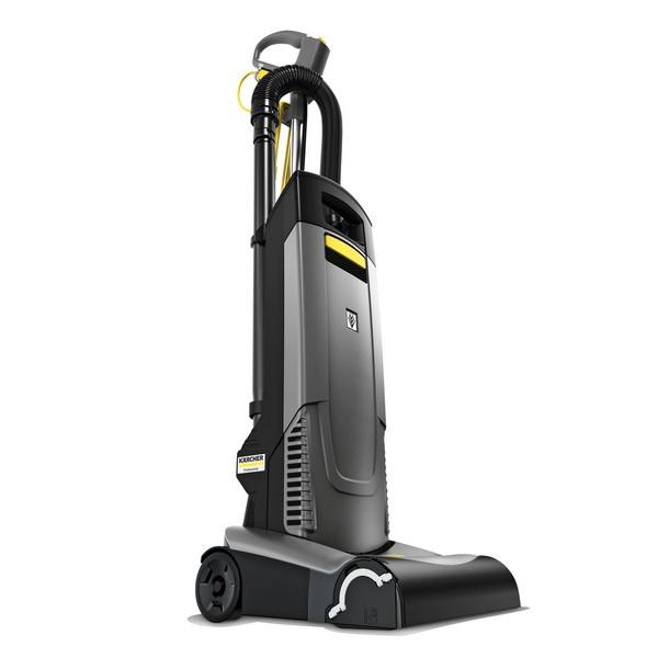 Профессиональный пылесос для ковров Karcher CV 30/1  имеет регулируемую высоту установки щетки. Благодаря этому он адаптируется к любой длине ворса ковровых покрытий. Благодаря большой рабочей ширине в 300 мм вертикальный щеточный пылесос CV 30/1 идеально подходит для уборки больших территорий: в розничных магазинах, шоурумах, гостиницах, ресторанах и др. Края, перегородки и небольшие ниши можно почистить легко и просто с помощью съемной всасывающей трубки с удлинительным шлангом. Инновационные детали оборудования подчеркивают продуманность и безопасность концепции: запатентованная центробежная муфта, которая автоматически отключает привод щетки в случае ее блокировки мусором, а также предотвращает деформацию щеток или порчу ковра в парковочной позиции, что является доказательством продуманного и безопасного устройства аппарата. Два прочных шарнира между щеточной головкой и корпусом, а также скользящее основание, выполненное из прочного пластика, свидетельствуют о высоком качестве продукции. Аппарат удобен в использовании: при необходимости щетку можно легко заменить без использования дополнительных инструментов.